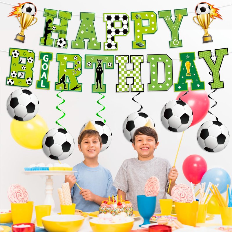 KORHONEN Soccer Party Decorations, Soccer Birthday Party Decorations Includes Happy Birthday Banner and Soccer Hanging Swirl for Kids Boy, Soccer Theme Party Decorations Supplies