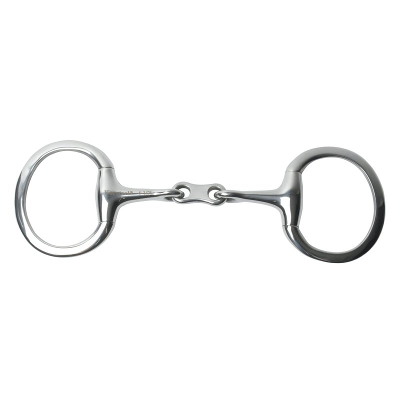 The eggbutt snaffle has fixed, oval shaped rings offering a consistent contact. French link offers independent control over two sides of the mouth, preferable to horses with less palate clearance.