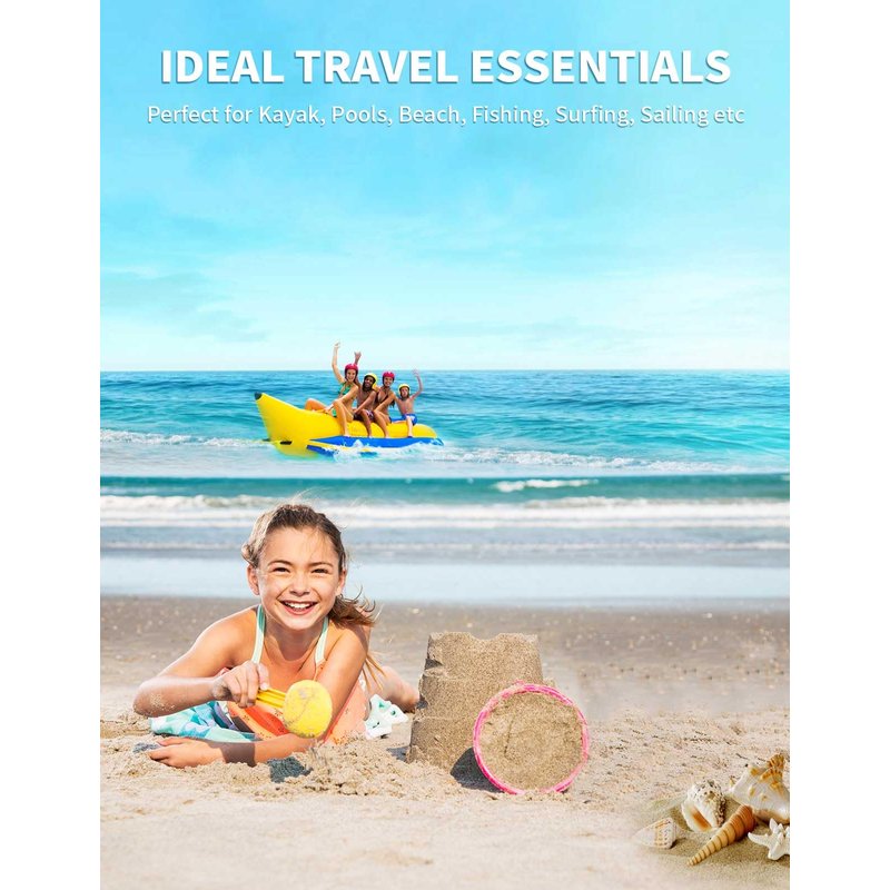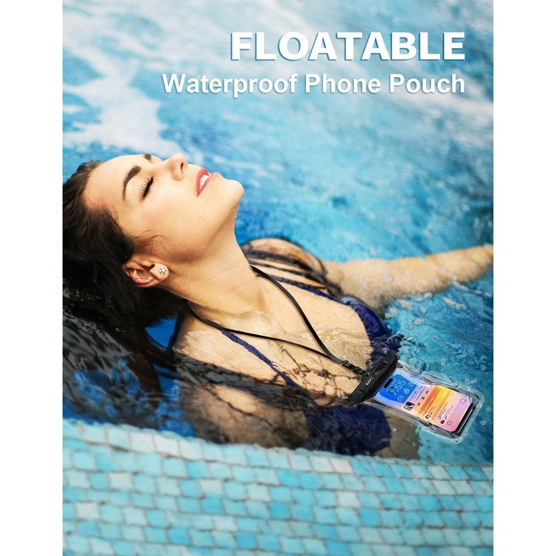 - TRAVEL ESSENTIALS-SUPERIOR WATERPROOF PROTECTION - 100 feet/30 meters Certified IPX8 floating waterproof phone pouch is perfect for kayak, swimming pools, beach, fishing, surfing, sailing, skiing, boating, snorkeling, tubing, rafting, showering, sauna, other water park activities and to store your ID; This floatable waterproof phone pouch will keep your phone full functional and 100% protected from water/sand/snow/dust/dirt making it one of the best cruise, vacation and travel essentials/accessories to have.