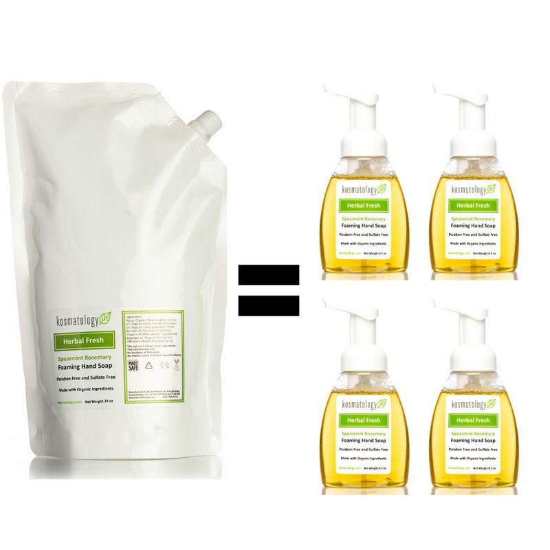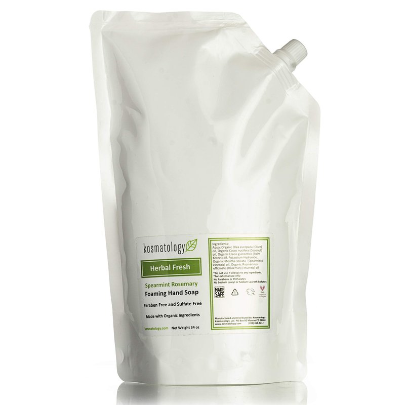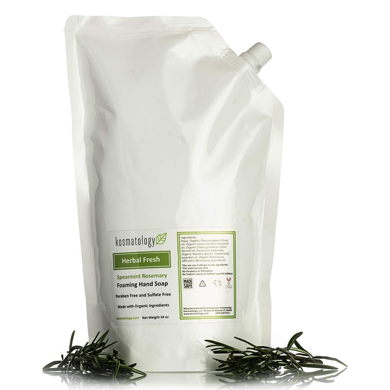 kosmatology Herbal Fresh (Spearmint-Rosemary) Organic Foaming Hand Soap Refill Bag, 34 fl oz
