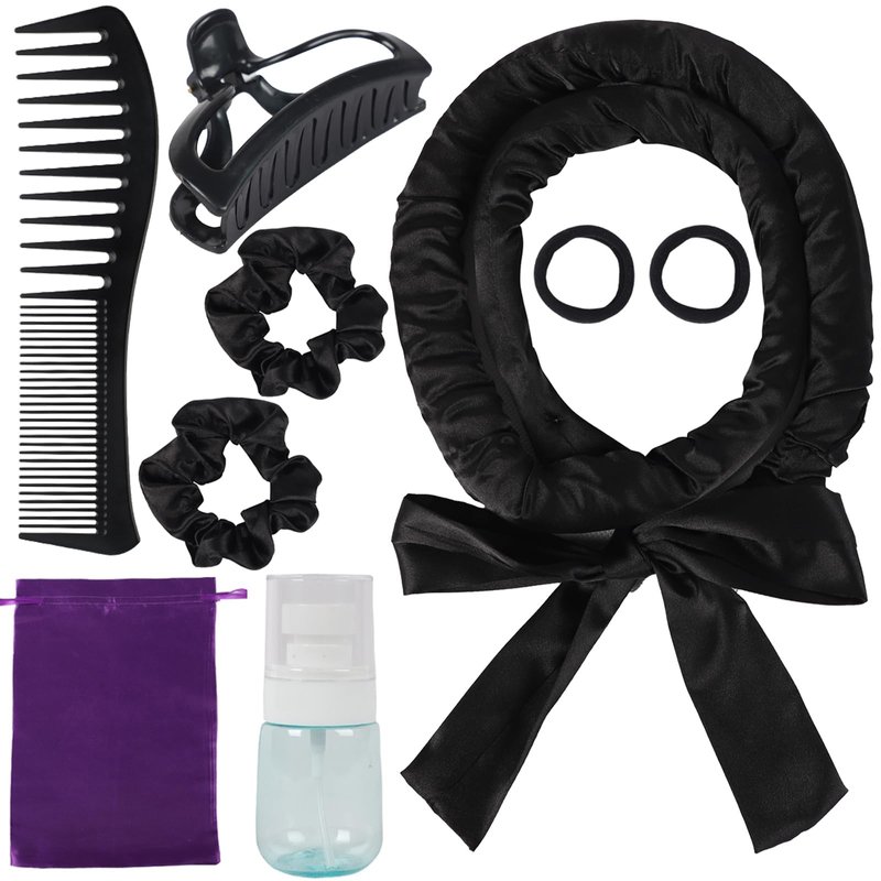 kossys Heat Less Curling Rod Headband, No Heat Hair Curler to Sleep in, Overnight Curls, Satin Heat Less Curling Set for Long Hair, Black, 1 Count