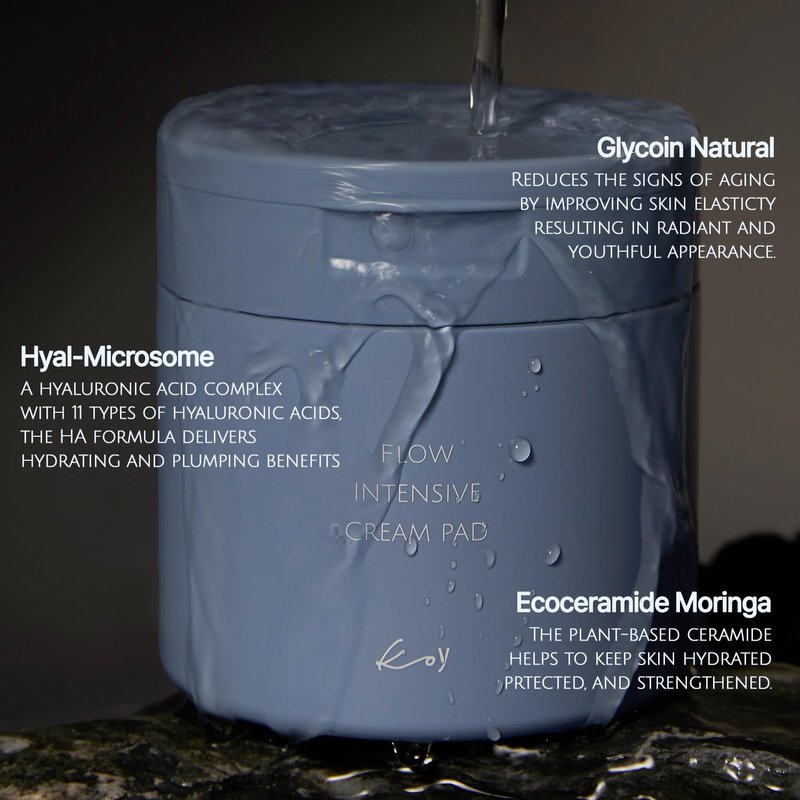 KOY Flow Intensive Cream Toner Pad - Facial Toner Mask Pads for Skin Barrier Repair - Massive Amount of Essence for Hydrating and Soothing - Hypoallergenic Tested - Korean Skin Care, 50 Pads