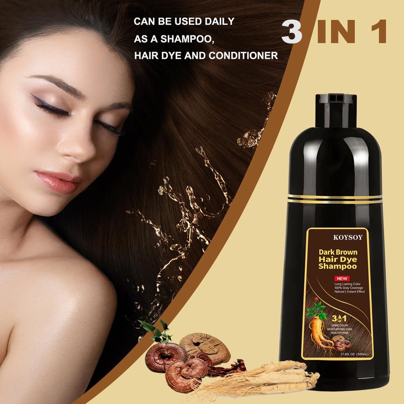 KOYSOY Dark Brown Hair Dye Shampoo 3 in 1,100% Covers Gray Hair,Hair Color Shampoo Can Avoid Going to the Salon to Dye Your Hair,Convenient and Effective Shampoo Hair Dye(500mL,17.6 Fl Oz)(Dark Brown)