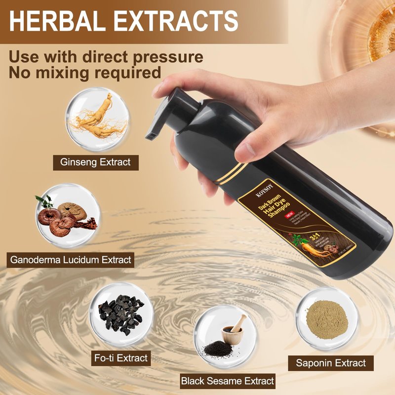 - ✅Botanical Ingredients:Hair dye shampoo Made using natural plants,Ginseng Extract, Fo ti Extract, Ganoderma Lucidum Extract, Black Sesame Extract, Saponin Extract,No more worrying about hair color shampoo causing damage to hair and skin.