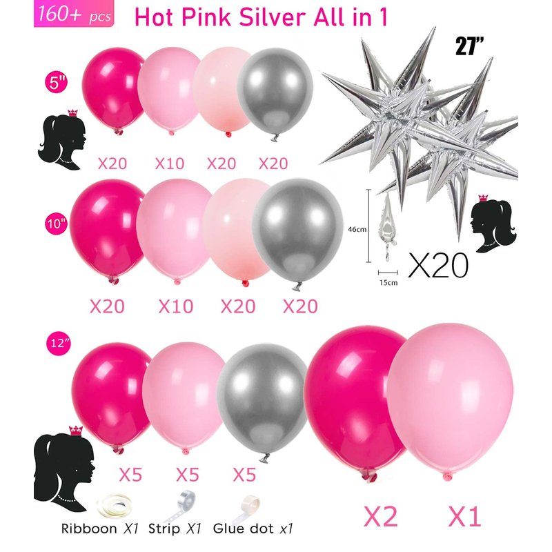- Customized Decorations: 160 piece hot pink and silver starburst balloon kit for parties