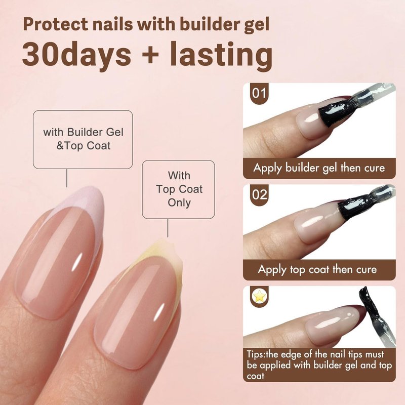 5. Apply builder gel and base coat then cure for 45-60s<br>