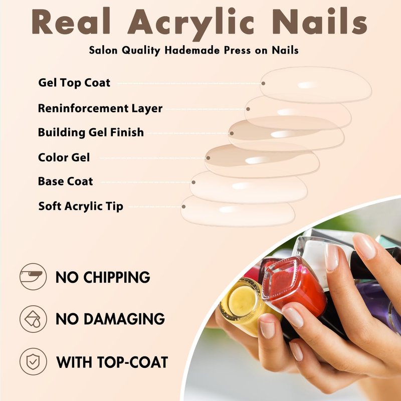 - đăSuitable For Daily WearăOur sticker nails for women are made using premium texture that is both strong and sturdy.These short false nails acrylic are designed to withstand everyday activities,such as typing,washing dishes,or even outdoor adventures,without losing their quality or falling off.