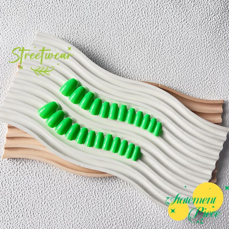 - đăWell fitting,Natural LookingăThe short coffin nails glue on come in a delightful array of natural beautiful color choices.Neon green false nails medium length completely cover your nail beds without any gaps or edges that don't fit properly.The sizing is thoughtfully designed,offering a wide range,which would be suitable for everyone.