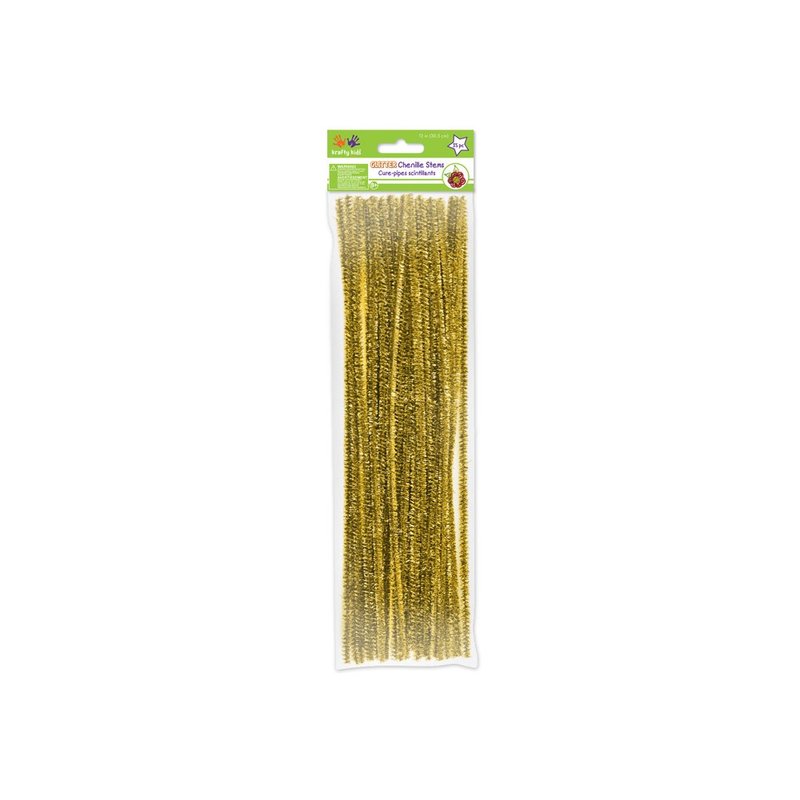 Krafty Kids GC025B, Tinsel Chenille Stems, Glitter Pipe Cleaners, 6mm by 12in, Gold, 35-Piece, 1/4" x 12" X