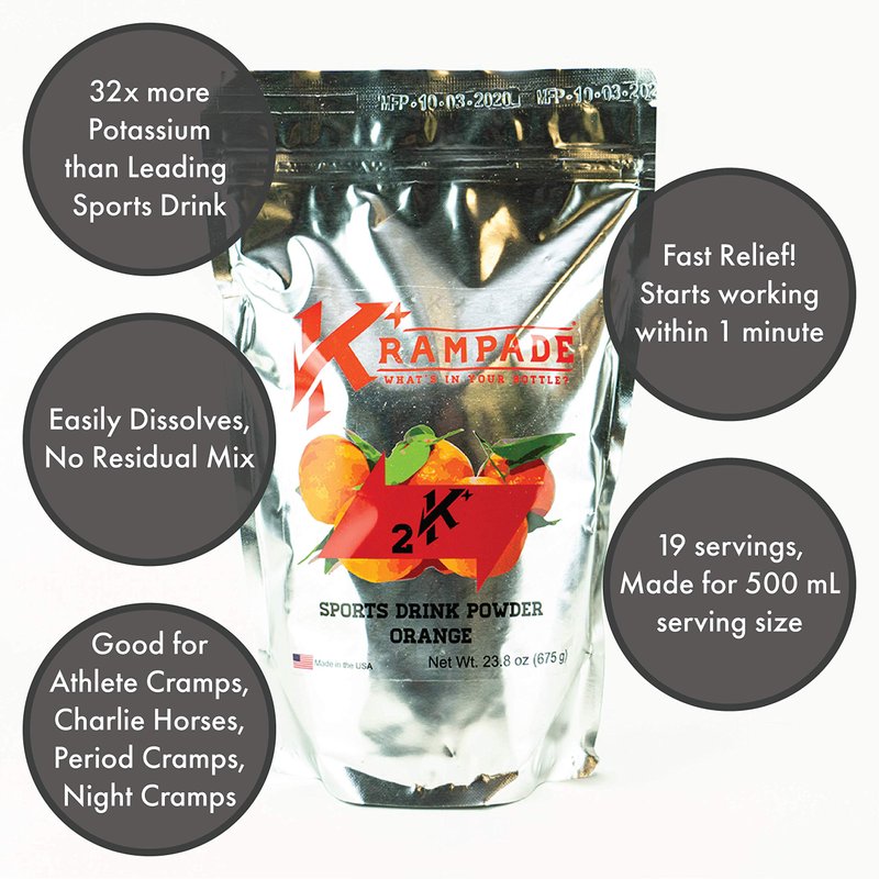 - Complete Cramp Defense - Krampade's proprietary potassium chloride and potassium citrate powder is the faster, more effective alternative to quinine for leg cramps, heating pad for period cramps, and other so-called solutions. If it cramps, we uncramp it, guaranteed.