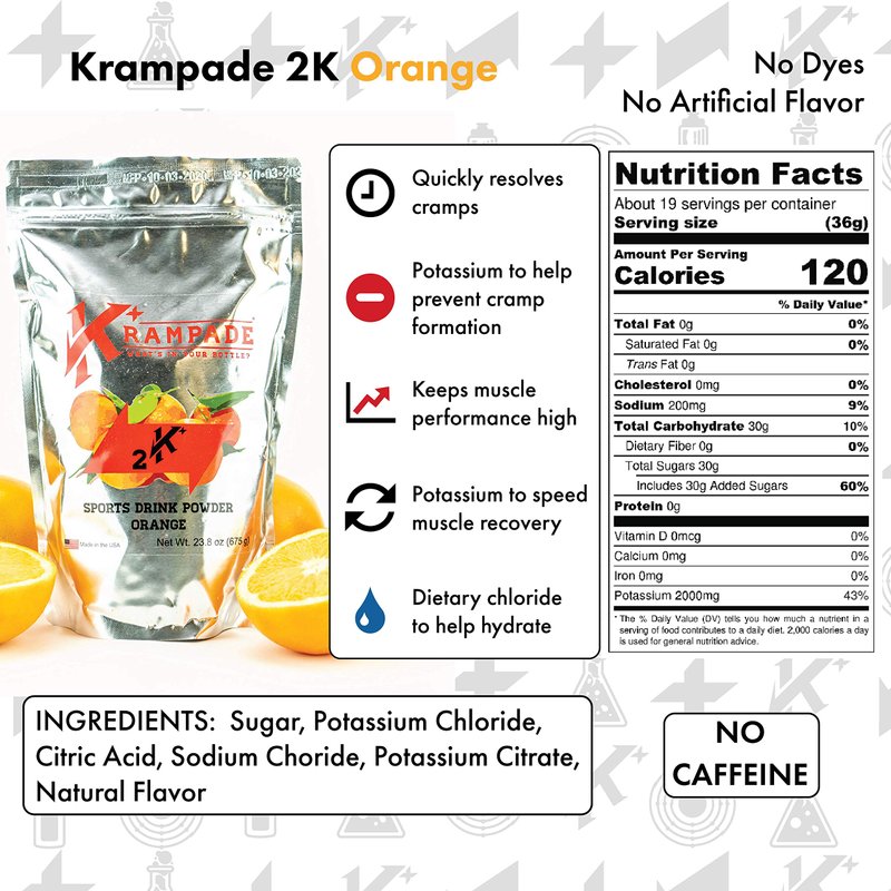Krampade Electrolytes Powder Potassium Supplement - 2000 mg K+, 2X More Than Coconut Water | Cramp Relief and Prevention | Hydration Powder