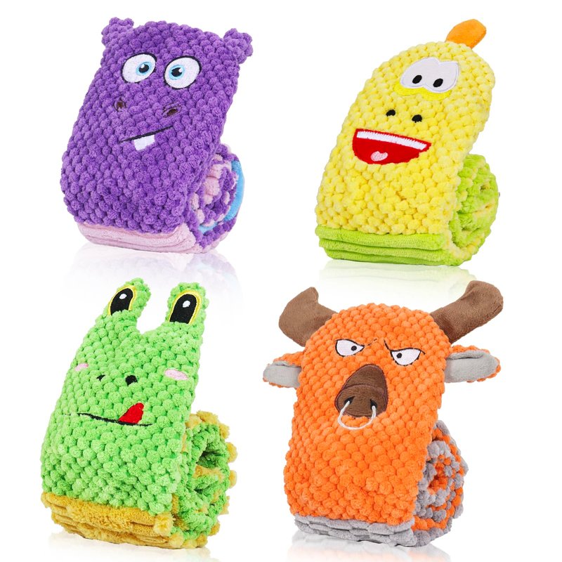- Perfect Gift Set for Small & Medium Breeds: 4 Pack colorful animal toys with cute faces, wonderful puppy gifts for dog birthday, Christmas, Easter and other holidays.