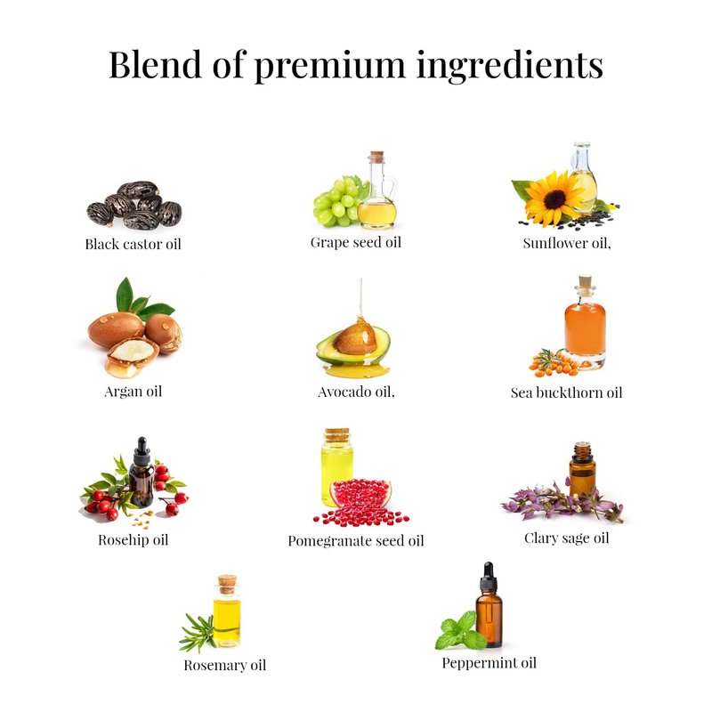 - ✔️ Enriched Formula: Our hair oil, formulated with a blend of premium ingredients, including Black Castor Oil and Argan Oil, provides deep moisturization and nourishment, promoting healthier, shinier hair with each use.