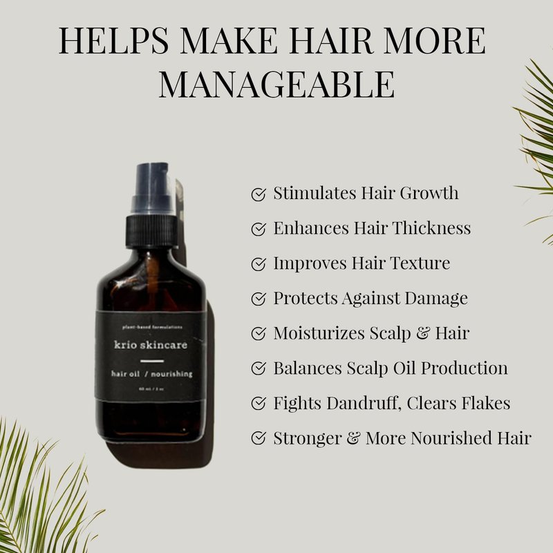 - ✔️ Nourishes the Scalp: In addition to moisturizing the hair, our Hair Oil nourishes the scalp, helping to alleviate dryness, itchiness, and irritation. Experience the soothing relief of a well-nourished scalp with our luxurious Hair Oil.