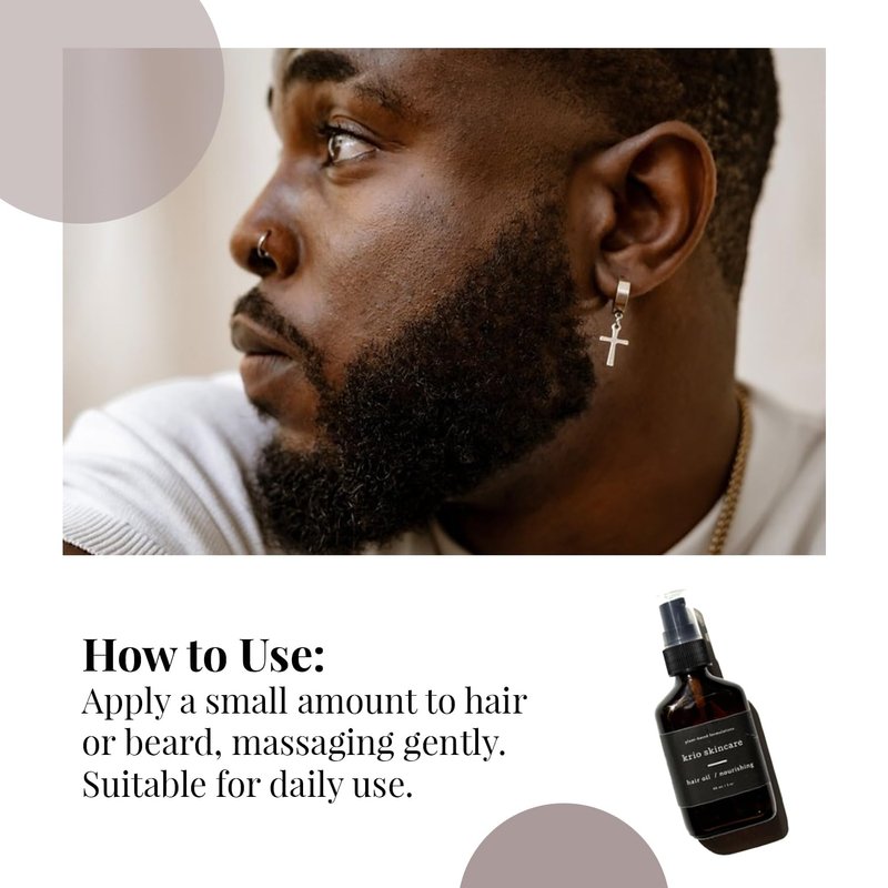 krio skincare Hair Oil, Hydrating Hair, and Beard Oil, Black Castor and Argan Blend for Deep Moisturizing, Lustrous Shine, and Scalp Nourishment, Coarse Hair Treatment (2 Oz)