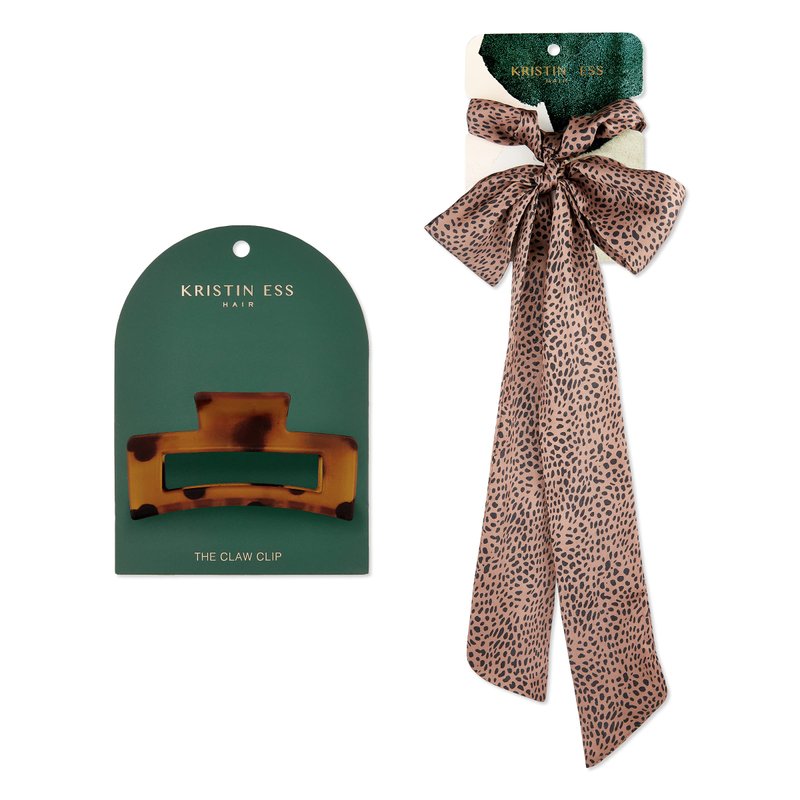 - Kristin Ess hair accessories are designed to dazzle, while being quick + easy to use. Each piece, whether it's a scrunchie, hair clip, hair tie, headband, hair comb, barrette, bow or other hair accent, instantly elevates your style.