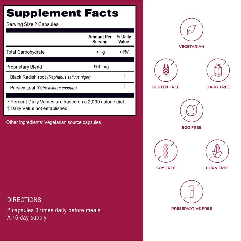 Kroeger Herb, Radish and Parsley Supplement, Immunity Support, Liver Health and Gallbladder Support with Black Radish, Vegetarian, Non-GMO, Gluten Free, No Preservatives or Fillers - 100 Capsules