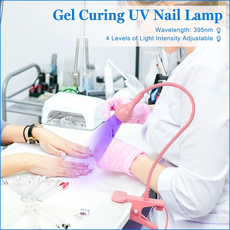 - 【Flexible LED Glue Curing Lamp】The UV gel nail lamp is equipped with a flexible gooseneck and strong clip,the gooseneck is about 10 inches (26cm) long and can be adjusted 360°.You have the flexibility to adjust the angle and height you need and don't have to worry about awkward angles since you can clamp it directly to your desk or wherever you find most convenient(Note: Please wait until the lamp head cools down before touching it after prolonged use to prevent overheating and causing injury)