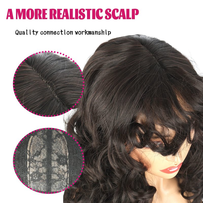 - 💖【Who Needs Long Curly Wig With Bangs?】Wigs with bangs is suitable for women of all skin tones and for women of all ages, girls, mature women, and older people can all manage this style perfectly. Wig with bangs also great for beginners, you can quickly put black wig with bangs on in minutes. Perfect!