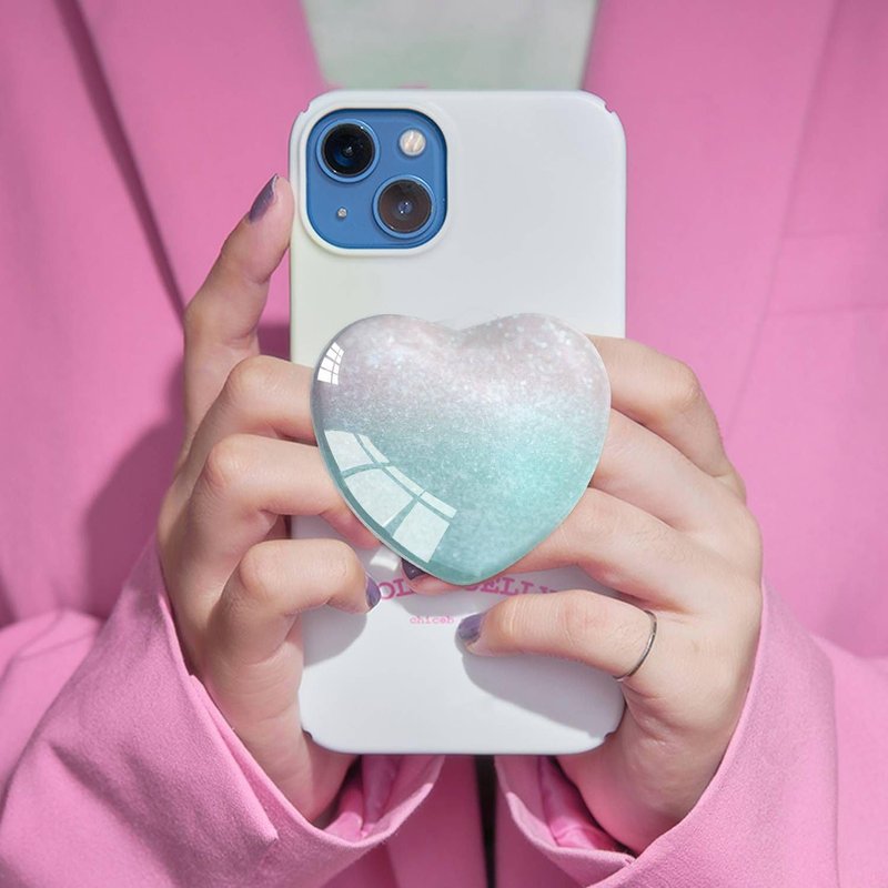 Ksadiye Expandiing Moblile Cell Phone Grip Heart Shape Glass Holder for Smartphones, Cellphone Collapsible Stand( Rose Gold Green