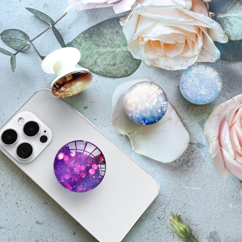 Ksadiye Phone Grip with Expanding Kickstand,Cell Phone Collapsible Stand Blue Rose Gold Sparkling Design for Smartphones