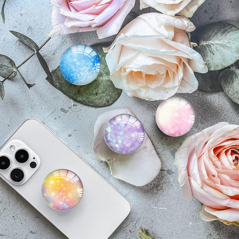 Ksadiye Phone Grip with Expanding Kickstand,Cell Phone Collapsible Stand Pink Bright Stars Design for Smartphones