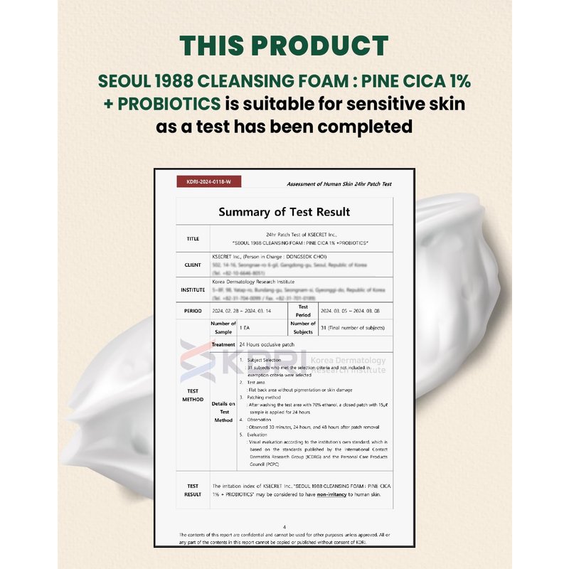 KSECRET SEOUL 1988 Cleansing Foam : Pine Cica 1% + Probiotics, 150ml/5.07fl.oz.
