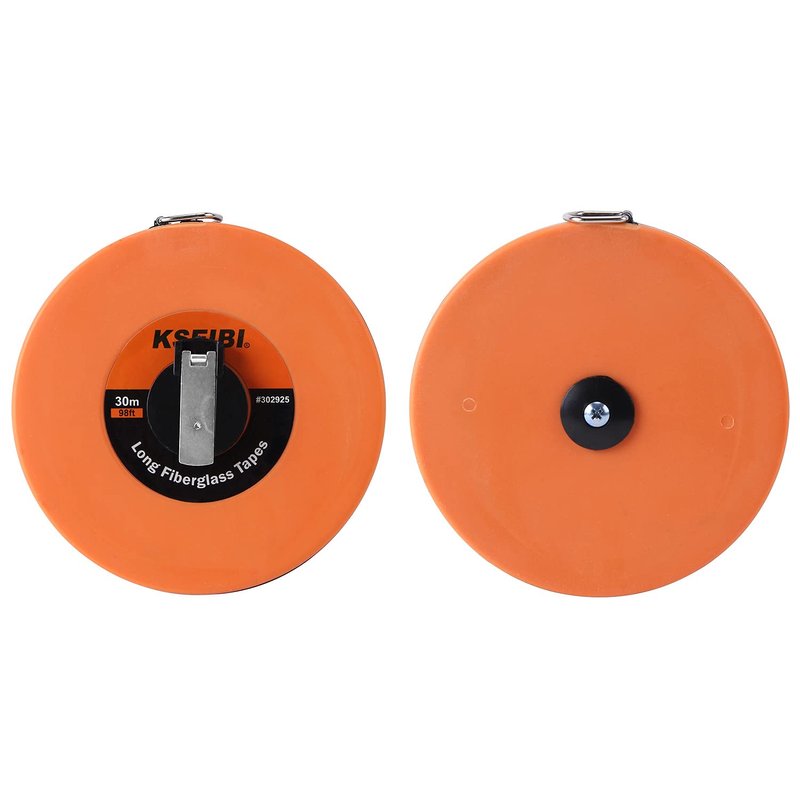 KSEIBI 302925 Long Fiberglass Tape Measure Double Face Printing Inch/Metric for Construction Work (100ft / 30m)