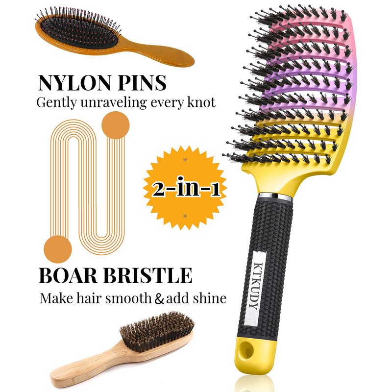 KTKUDY Wet & Dry Detangling Hair Brush - Tangle Free Detangler Brush For Women Men & Kids - Faster Blow Drying - Vented Curved HairBrush