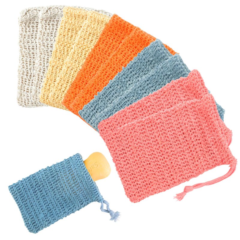 KUAOOAUK 10 PCS Soap Saver Pouch, Exfoliating Soap Bag with Drawstring, Natural Sisal Bar Soap Bags for Foaming and Drying, Mesh Soap Pouch for Shower Bath (5 Colors)