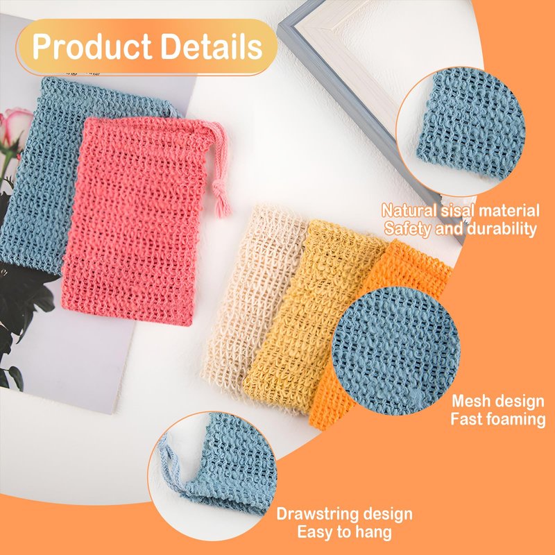 - 【Drawstring &Mesh Design】The sisal bar soap bag with a drawstring for easy access to the soap. After showering, you can remove the soap and hang the soap bag up to dry quickly. The mesh design is easy to lather quickly, saving soap and delaying use.
