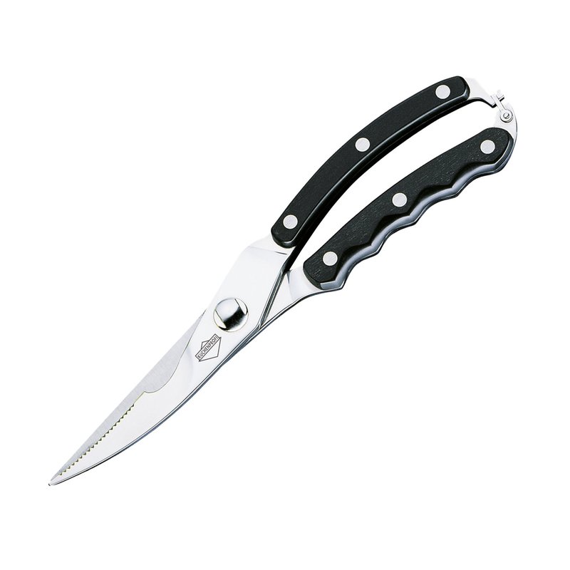 - Classic poultry shears made with high quality stainless steel blades and black wood handle