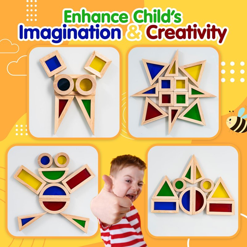 It's exciting to look at, and your kids can take advantage of the opportunity to make colored shapes with our wooden blocks.