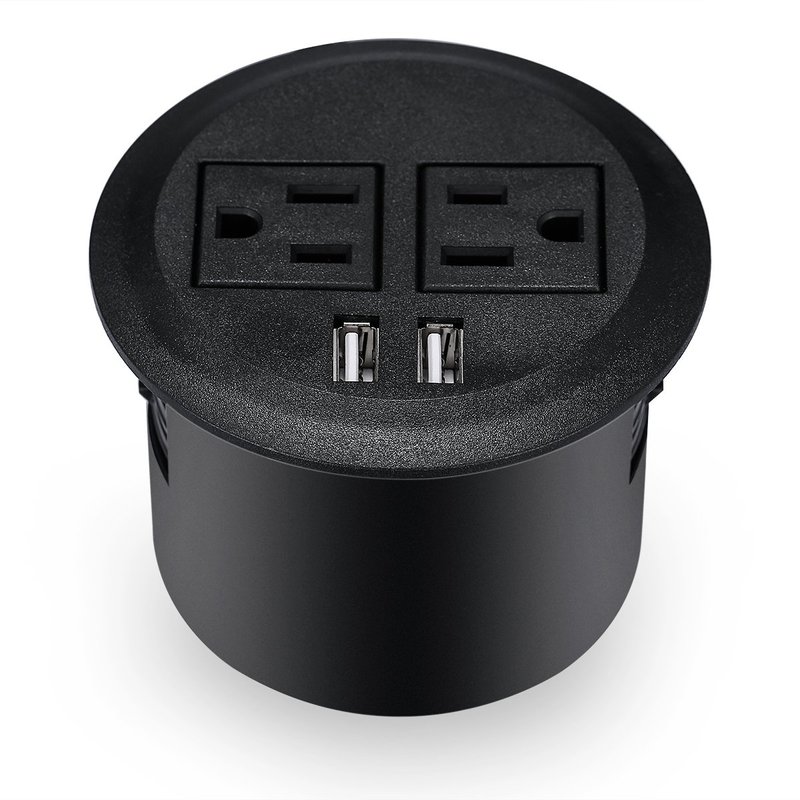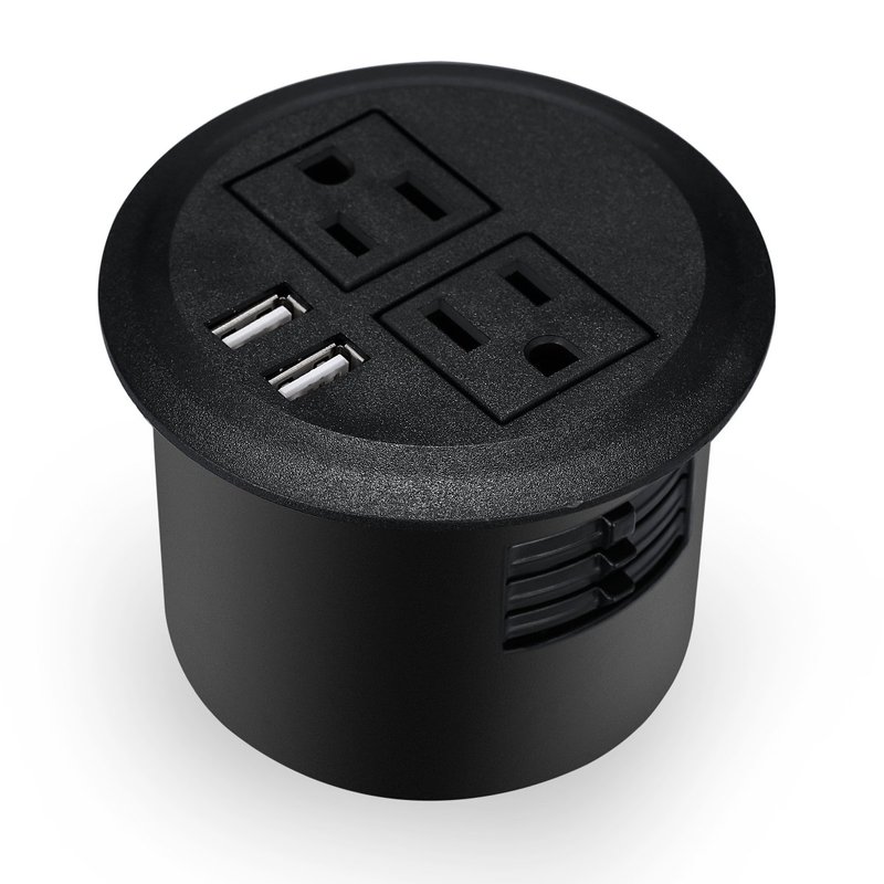 Kungfuking Desktop Power Grommet Power Outlet Socket Desk Data Center 2 Outlet with 2 USB Ports with 10 FT Extension Cord Black