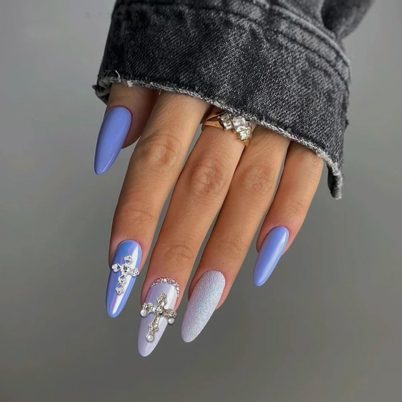 7. Then a charming cross nail art design is done.