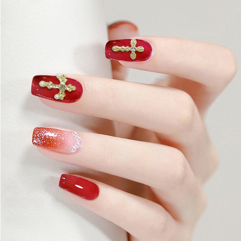 3. Reusable Material: These exquisite cross nail art decorations are made of reliable alloy, rhinestone and artificial pearl, can be applied repeatedly if you like. They are also easy to be removed with nail polish remover when not in use.