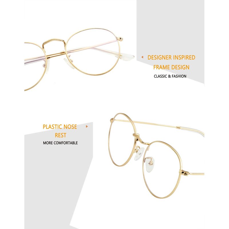 - SKIN FRIENDLY SILICONE NOSE PADS ▶ These round eyewear use the environmental & skin-friendly silicone materials to make the nose pads. And the design of the nose pads is adjustable which allows for maximum comfort and flexibility.