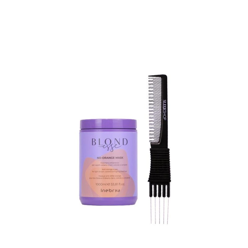 This kit includes a quantity of (1) Premium Carbon Heat-Resistant Multi-Use Teasing Comb which is an anti-static, lightweight, durable comb with specially designed grips for non-slip. This multi-purpose comb can also be used for braiding and teasing hair. 5 metal picns Inebrya Blondesse No-Orange Mask No-Orange Mask is a sealing and acidic pH conditioning treatment to detangle, nourish and hydrate the hair, neutralizing orange-copper tones and providing softness and shine. Ideal on tones 6-7. Its particular formula is enriched with a very pure concentration of Extra-Blue Pigment. By leveraging its innovative technology, the pigment deeply penetrates and settles between the hair scales and cuticles. In this way, the neutralising effect is immediate. Black Carbon helps cleanse out and purify the hair, aiding it to protect itself from pollutants. The hair will immediately look light and fluffy. As a result of their Rasveratrol, Polyphenols and Vitamin C contents, the extracts of Bilberry, Raspberry and Blackberry help prevent the oxidative stress of the hair. The colour looks revived and shiny, even after a technical service. Vegan-friendly, sulphate- and surfactant-free.