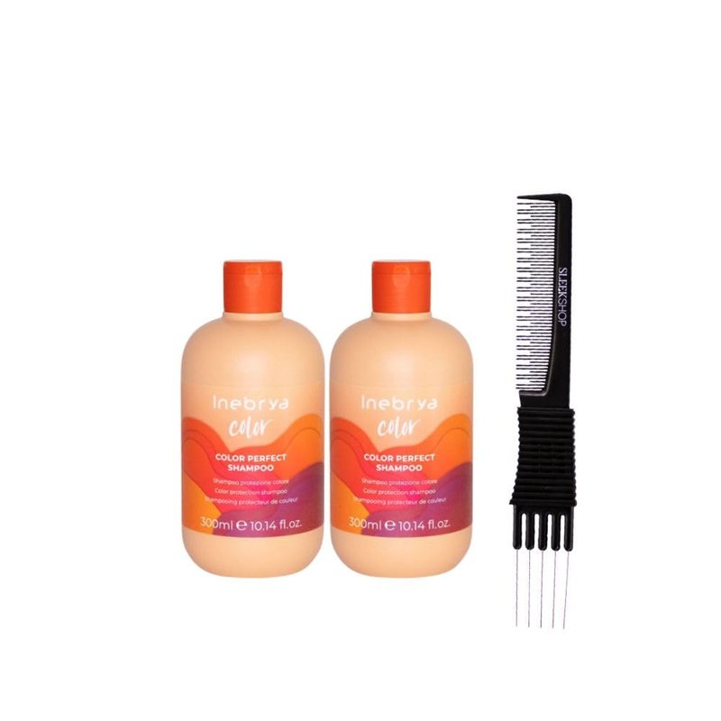 kuss Inebrya Color Perfect Shampoo (10.14 oz) with Teasing Comb Pack of 2