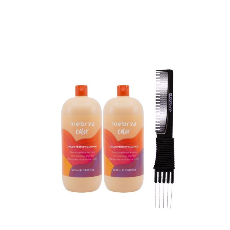 kuss Inebrya Color Perfect Shampoo (33.81 oz) with Teasing Comb Pack of 2