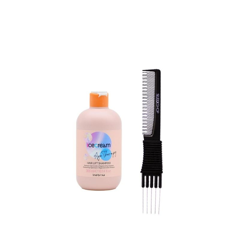 kuss Inebrya Ice Cream Age-Therapy with Collagen Hair Lift Shampoo (10.14 oz) with Teasing Comb Pack of 1