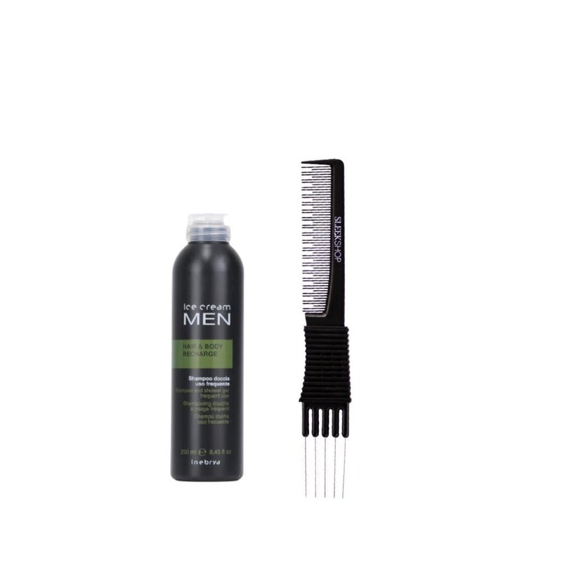 kuss Inebrya Ice Cream Men Hair & Body Recharge (8.45 oz) with Teasing Comb Pack of 1
