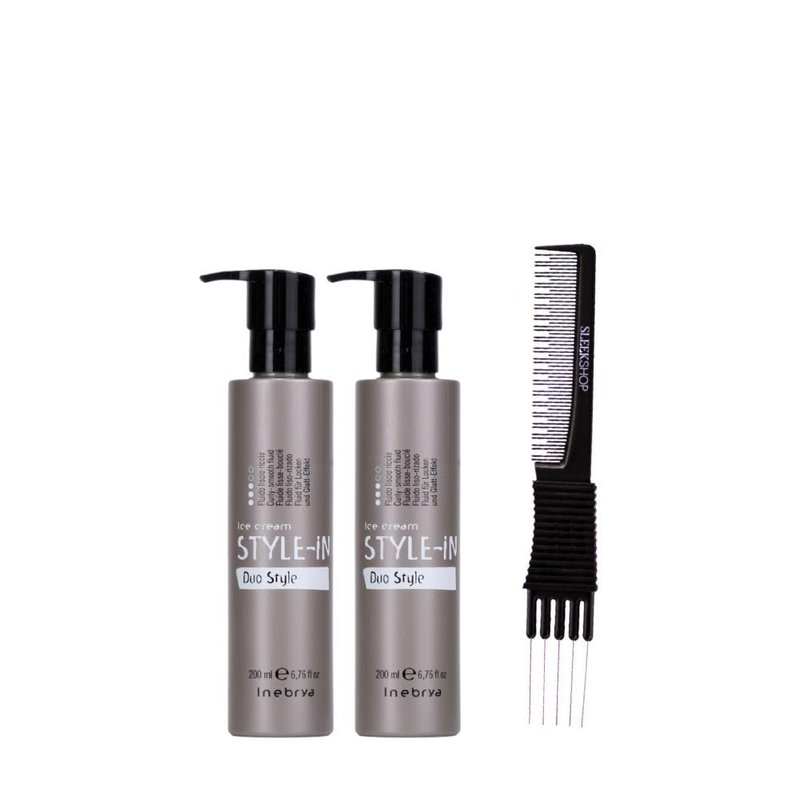 kuss Inebrya Ice Cream Style-In Duo Style (6.76 oz) with Teasing Comb Pack of 2