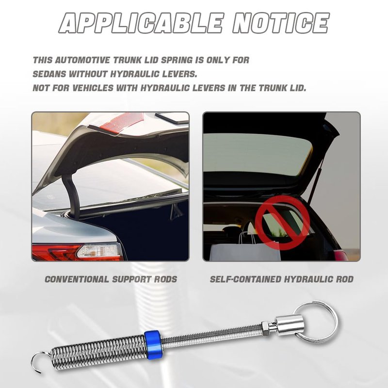 - [Widely applicable]: ,The length of The trunk spring lifting device can be adjusted: shortest Length 15cm, largest length 24cm. This adjustable auto car trunk boot lid can be widely applied to most vehicles, please note that only applicable to the trunk cover without hydraulic rod on the car, please confirm whether it is suitable for your car before purchase.