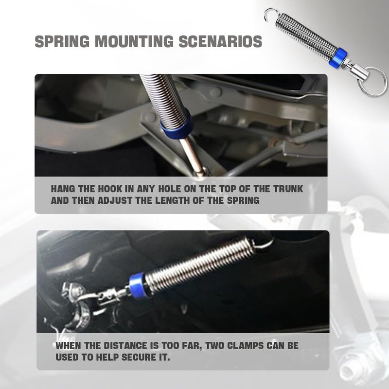 - [Practical design]: The car trunk lid metal spring adopts a practical design such as full-tooth screw adjustment, anti-break conical limit and reinforced hanging ring. You can easily adjust the force of the spring to make it perfectly suitable for your car.
