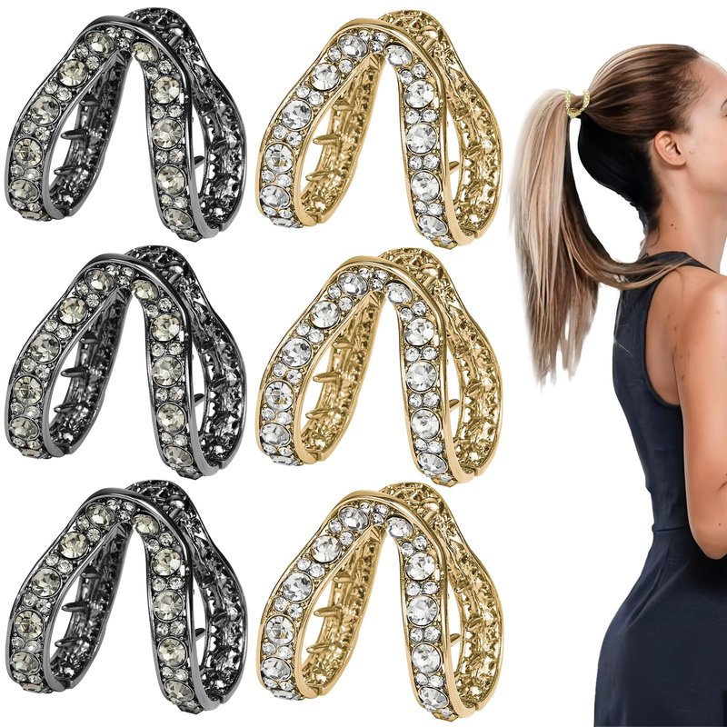 - 【PACKING LIST】You will receive 6 rhinestone ponytail hair claw clips, color: gold, black, suitable for different hairstyles and occasions, making you look fashionable