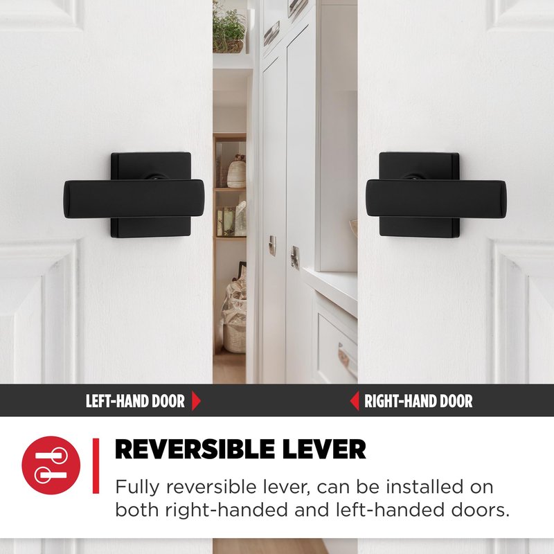 - EASY INSTALL REVERSIBLE LEVER: Do it yourself, installs in minutes with just a screwdriver. Reversible handle for left- or right-handed doors, detailed directions provided