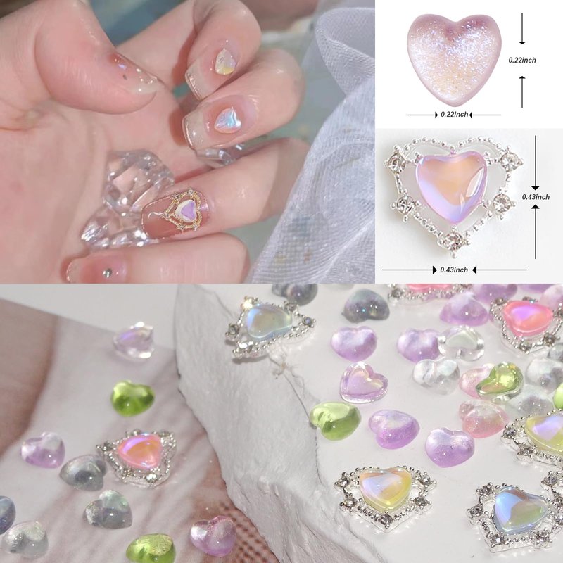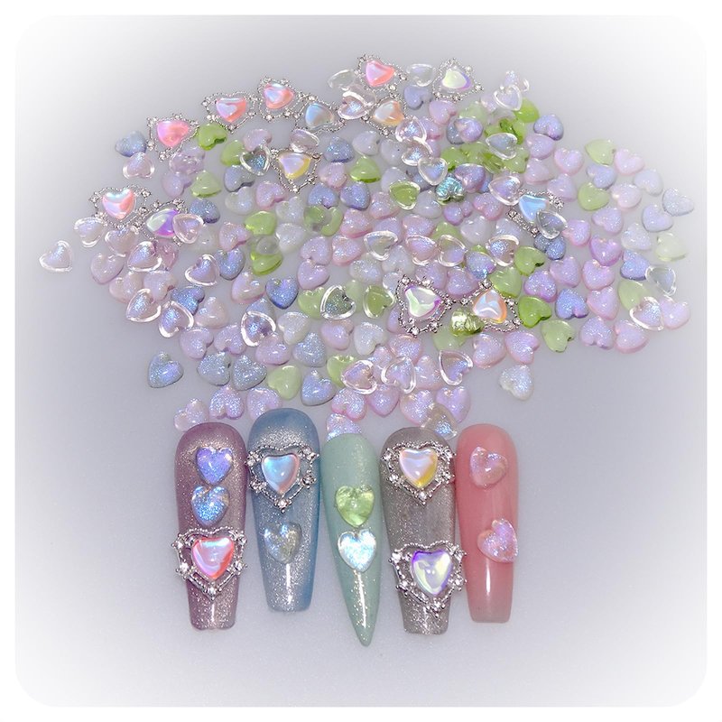 - 【Package Include】There are 160pcs (10pcs Metal Alloy heart shaped + 150pcs Aurora heart shped) nail charms totally in the package. 2 different sizes and multi color, you can use these charms to make your favourite jewelry or craft.