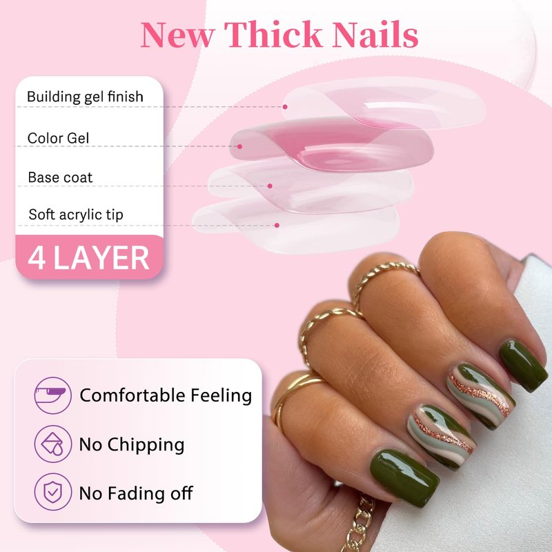 - 【Upgraded Material&Technology】Focus on press-on nails for many years,these fake acrylic nails are durable at the fingertips while seamless fit at the nail edge.Feel comfortable when wearing.It won’t burden your real nails,better than gel polish.