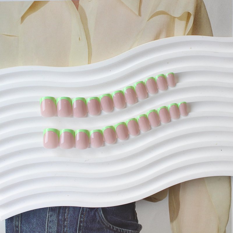 KXAMELIE Neon Green French Tip Press on Nails Short Square Natural Fake Nails For Women Nude Glue on Nails Short Nails Press on Gel Nails Set Reusable Acrylic False Nails For Girls in 24 PCS